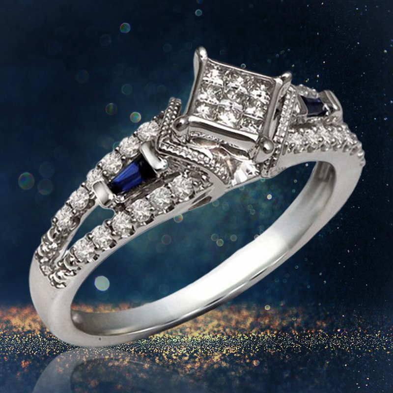 Blue Square Cz Rings Wedding Bands Aaa Zircon Jewelry Women