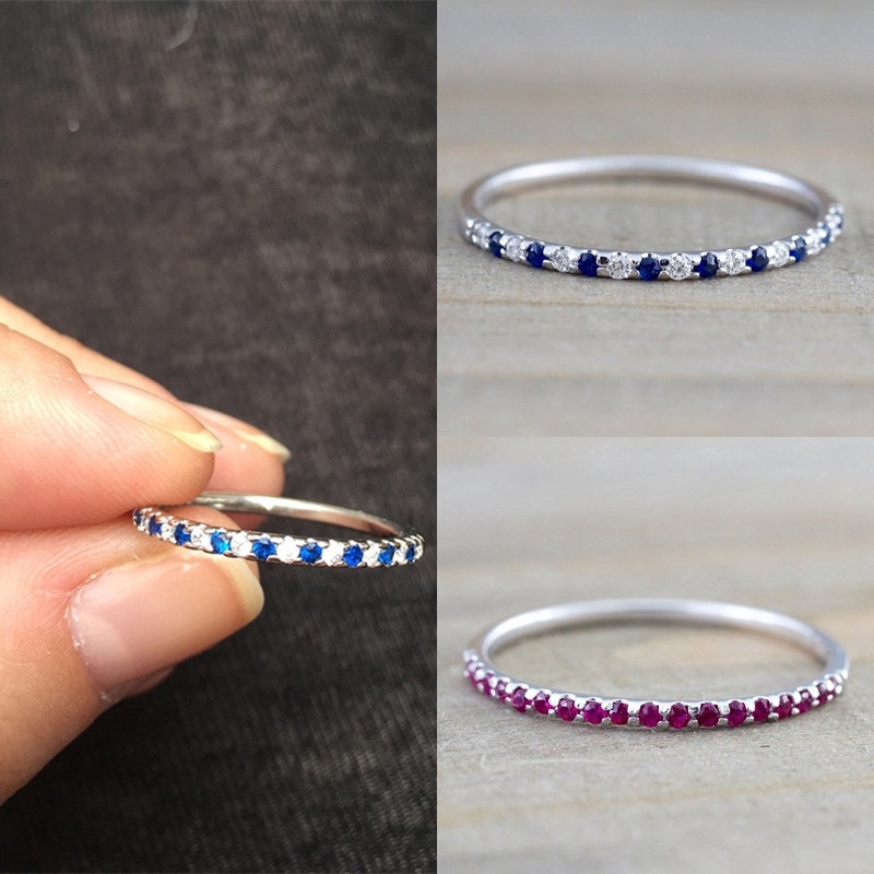 Round Cut Ruby Sapphire Anniversary Gemstone Ring Wedding Bands